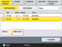 Wählen Sie die abzubrechenden Kopieraufträge aus, und drücken Sie <Abbrechen>.