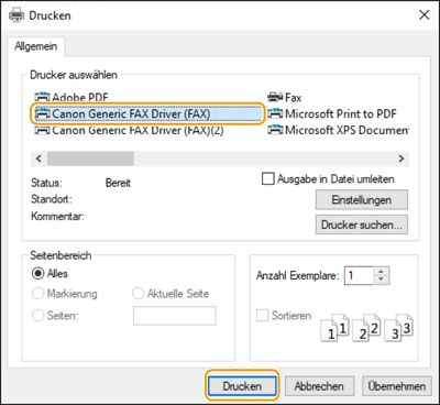 Wählen Sie das Gerät aus, und klicken Sie auf [Drucken] oder [OK].