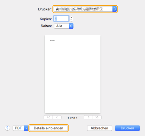 Öffnen Sie ein Dokument, und zeigen Sie das Druckfenster an.