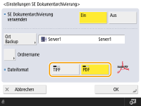 Drücken Sie <Ein> für <SE Dokumentarchivierung verwenden>.