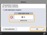 Geben Sie die Zeit für den Sendevorgang ein, und drücken Sie <OK>.