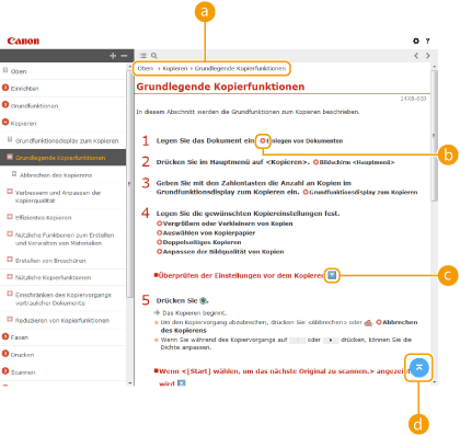 Klicken Sie hier, um Einstellungen wie beispielsweise Textgröße, Anordnung und Anzeigemethode für Anwenderhandbuch festzulegen.