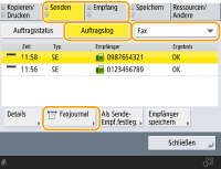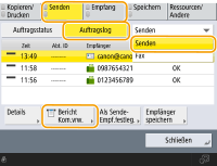 1 | Drücken Sie <Senden> oder <Empfang> <Auftragslog>. |