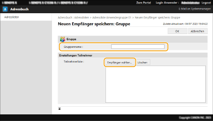 Wenn Sie das Ziel mit einer registrierten Benutzergruppe gemeinsam verwenden möchten, wählen Sie eine Adressliste der registrierten Benutzergruppe.