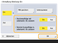 Wenn <Aus> ausgewählt ist, muss eine Abteilungs-ID vor Durchführung eines entsprechenden Auftrags eingegeben werden.