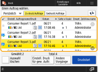 Die im Gerät gehaltenen Dokumente werden auch dann gespeichert, wenn das Gerät ausgeschaltet wird. Sie können die Zeitspanne für die Aufbewahrung der im Gerät gehaltenen Daten ändern. <Dauer Auftragsspeicherung> |