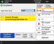 Grundfunktionsbildschirm zum ScannenAngeben von Zielen aus dem Adressbuch