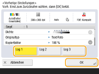 Drücken Sie <Vorherige Einstellung.> in der Anzeige für Grundeigenschaften des Scannens. Grundfunktionsbildschirm zum Scannen