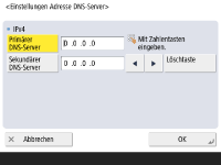 Die DNS-Serveradresseinstellung und die Proxyeinstellungen für die Nebenleitung können nur für eine bestimmte Systemdatenkommunikation verwendet werden, wie beispielsweise für den Zugriff auf einen Firmware-Verteilungsserver über die Nebenleitung. Wenn ein DNS-Server oder Proxyserver der Nebenleitung für andere Anwendungen als die Systemdatenkommunikation verwendet werden soll, registrieren Sie die mit der Nebenleitung zu verwendenden Adressen und Portnummern in den Einstellungen der Hauptleitung. Sie können auch bestimmte Arten der Systemdatenübertragung mit der Hauptleitung durchführen. |