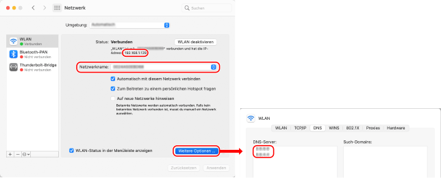 Anzeige der IP-Adresse und des DNS-Servers