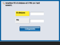 Quando la Gestione ID divisione non è implementataQuando sono impostati solo ID e PIN del Manager di sistema senza Gestione ID divisione, i metodi di accesso differiscono tra l'amministratore di sistema e utenti generici. Per l'amministratore di sistema, immettere [ID gestore sistema]/[PIN gestore sistema] e fare clic su [Accedi (Amministratore)]. Per gli utenti generici non è necessario immettere PIN e ID divisione. Fare clic su [Accedi (Utente generico)]. |