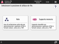 Schermata di selezione memorizzazione