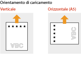 Quando si esegue una copia, prestare attenzione anche all'orientamento del documento originalePosizionare l'originale nell'alimentatore con il lato da copiare verso l'alto, oppure posizionare l'originale sul vetro di lettura con il lato da copiare verso il basso, come illustrato nelle seguenti figure.