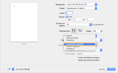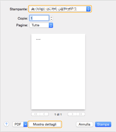 Aprire un documento e visualizzare la schermata di stampa.