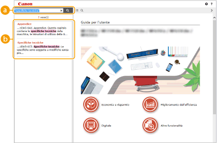 per visualizzare la schermata di ricerca. Contiene una casella di testo per eseguire una ricerca per parola chiave e trovare la pagina cercata.