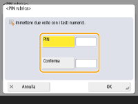 (Azzera) per cancellare il PIN (lasciare vuota la casella di testo) e premere <OK>.![]() |
