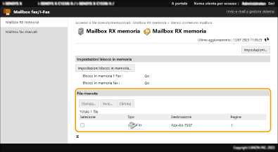 Fare clic su [Accesso a file ricevuti/memorizzati] nella pagina del portale. Schermata IU remota
