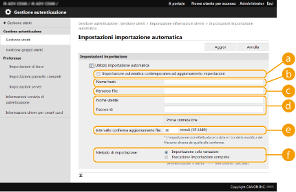 Selezionare la casella di controllo per [Utilizzo importazione automatica] e specificare le impostazioni necessarie.