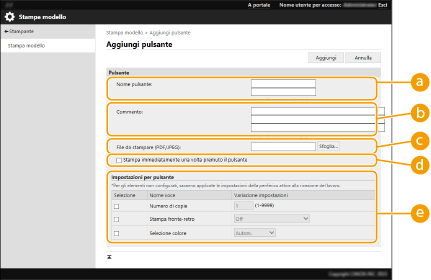 Per modificare le impostazioni in un pulsante, fare clic sul nome del pulsante.