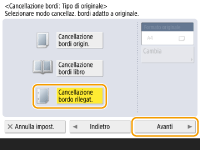 Premere <Cancellazione bordo rilegatura>  <Avanti>.