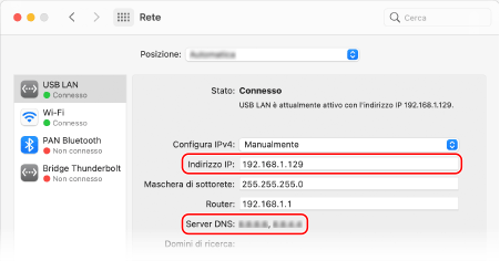 2 | In [Proprietà], visualizzare l’indirizzo IP e il server DNS. |