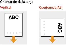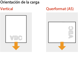 El método de carga varía en función de si la orientación del papel con logotipo impreso es vertical u horizontal.