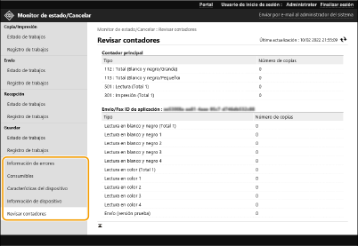 Puede utilizar la IU remota para consultar el estado de documentos que están a la espera de ser procesados, así como los registros de los documentos que se han procesado. También puede consultar el estado del equipo, como la información de errores y la cantidad restante de consumibles.