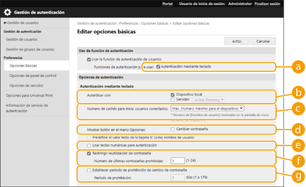 Configure las opciones siguientes para utilizar la autenticación mediante el teclado.