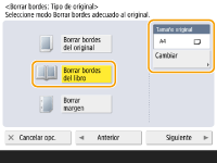 Pulse <Borrar bordes del original> y consulte <Tamaño original>.