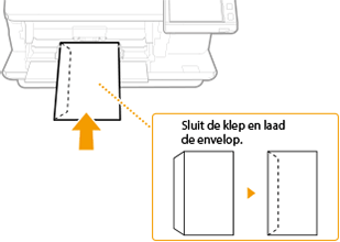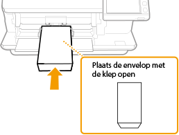 Plaats enveloppen in de papierlade of in de papiertafel. Voorkom bij het afdrukken van enveloppen papierstoringen en kreukels door eventuele krullen glad te strijken voor het plaatsen. Let ook op de invoerrichting van de enveloppen en welke kant naar boven wijst.
