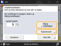 Druk op <Wijzig instellingen> om de instellingen te wijzigen. <Kopieervoorbeeld> wordt weergegeven nadat de instellingen zijn gewijzigd. Kopieer weer een voorbeeld.