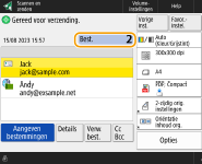 Scherm met basisfuncties voor scannenBestemmingen uit het adresboek opgeven