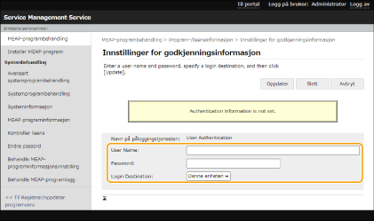 Konfigurere autentiseringsinformasjon for MEAP-appen