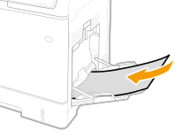 Utskrift på baksiden av et utskrevet papir (andre side av manuell 2-sidig side)Du kan skrive ut på baksiden av utskrevet papir. Glatt ut eventuelle krøller på det utskrevne papiret, og legg det i papirskuffen med utskriftssiden ned eller i flerfunksjonsskuffen med utskriftssiden vendt opp. Trykk deretter <2. side av 2-sidig side> på skjermen for å velge papirtype. Når du bruker flerfunksjonsskuffen, legger du inn ett ark hver gang du skriver ut. Bruk kun papiret som er skrevet ut med denne maskinen. Du kan ikke skrive ut på en side som det tidligere har blitt skrevet ut på. Hvis du bruker papir i A5-format, kan det hende at baksiden ikke skrives ut riktig. |