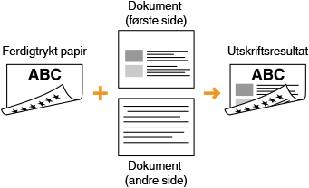Denne delen beskriver hvordan du legger inn ferdigtrykt papir med riktig retning. For en beskrivelse av den generelle prosedyren for å legge inn papir i papirskuffen eller multibrettet, kan du se Grunnleggende metode for innlegging av papir. Denne delen beskriver hvordan du legger inn ferdigtrykt papir ved énsidig kopiering/utskrift. Hvis du utfører tosidig kopiering/utskrift med ferdigtrykt papir, legger du i papiret ved å tenke motsatt av retningene som vises i denne delen. For å sikre at papir skrives ut på riktig side av ferdigtrykt papir uavhengig av énsidig eller tosidig utskrift, kan du bruke følgende innstillingsmetoder. Ved å spesifisere papirtypen hver gang du skriver ut: Legg i papiret registrert med "Ferdigtrykt papir" angitt til <På> i <Papirtype kontrollinnstillinger>, angi den papirtypen og utfør deretter utskriften. Ved å spesifisere papirkilden hver gang du skriver ut: Legg i papirkilden som <Bytt papirmatingsmetode> er angitt til <Utskr. side priorit.>, angi den papirkilden og utfør deretter utskriften. Riktig måte å legge i ferdigtrykt papir når "Ferdigtrykt papir" er angitt til <På> i <Papirtype kontrollinnstillinger> eller når <Bytt papirmatingsmetode> er angitt til <Utskr. side priorit.> Papirskuff: logosiden vendt opp Andre papirkilder enn papirskuffen: logosiden vendt opp |