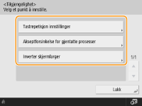 Trykk på <Tilgjengelighet>, og velg innstillingen du vil konfigurere.