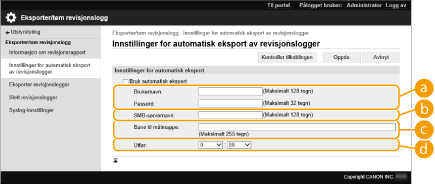 [Innstillinger for automatisk eksport av revisjonslogger].