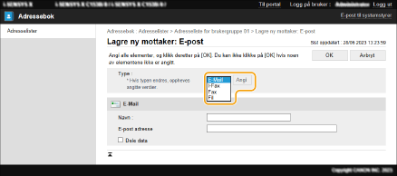 Du kan klikke på [Type]-ikonet eller navnet til en mottaker for å sjekke detaljene til mottakeren. Hvis du vil redigere mottakeren, klikker du på [Redigere], endrer de registrerte detaljer, og klikker på [OK].
