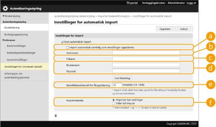 Du kan automatisk oppdatere brukerdata ved å periodisk importere filer lagret på et bestemt sted.