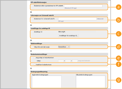 [Deaktiver brukerkontoen]Merk av i boksen hvis du vil deaktivere kontoen midlertidig.