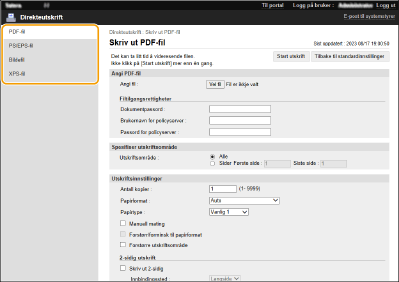 og skriver inn passordet i [Dokumentpassord]. Når du skriver ut PDF-filer koblet til policyserveren, velger du [Angi PDF-fil]