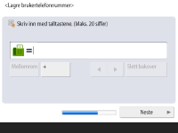 For å forbedre maskinens sikkerhet bruker du maskinen under et system som bruker brukerautentisering. ![]() Denne maskinen er innstilt til å bruke brukergodkjenning som påloggingstjeneste. Hvis du vl ha mer informasjon, kan du se Konfigurere innstillingene for personlig godkjenningsstyring. ![]() Trykk på <På> for <Bruk brukerautentisering>, trykk på <På> for påloggingsmetoden som skal brukes, og trykk på <Neste>. Hvis du ikke bruker brukerautentisering, trykker du på <Av> for <Bruk brukerautentisering>, trykker du på <OK> og går videre til trinn 5. ![]() Spesifiser følgende innstillinger hvis det ikke er administratorer foruten "Administrator"-brukeren som er registrert på maskinen. ![]() For å forbedre maskinens sikkerhet ved å deaktivere "Administrator"-brukeren og registrere en ny administrator, trykker du på <Ja>. I Lagre Administrator, skriver du inn <Brukernavn> og <Passord>, og trykker på <OK>. Spesifiser <E-post adresse>, <Avdelings-ID> og <Visningsnavn> som nødvendig. Hvis du vl ha mer informasjon, kan du se Registrere brukerinformasjon i den lokale enheten. "Administrator"-brukeren vil bli deaktivert neste gang du logger inn. For å fungere som "administrator" trykker du på <Nei>. ![]() ![]() Velg tidspunkt for visning av innloggingsskjermbildet. Hvis du velger <Vis når funk. valgt>, trykker du på <Funksjoner>, velger funksjonen du vil vise påloggingsskjermen for, og trykker på <OK>. Du kan også velge innstillingselementene på <Innstillinger/lagring>-skjermen du vil vise påloggingsskjermen for. Hvis du velger <Av> for <Tastaturautentisering>, trykker du på <OK>. Fortsett til punkt 5. Hvis du velger <På> for <Tastaturautentisering>, trykker du på <Neste>. ![]() ![]() Hvis du vil bruke godkjenning via en numerisk tastoppføring bare på påloggingsskjermen, trykker du på <På>, og trykker på <OK>. | |
