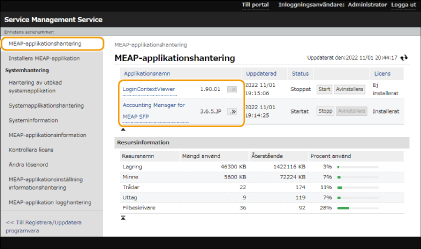 Klicka på [MEAP Application Management] och klicka på programmet när du vill hantera licensen.