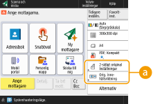 Du kan ändra vilka inställningsknappar som visas på skärmbilderna med grundläggande funktioner (för kopiering, fax och scanning) med andra inställningsknappar i <Alternativ>. Genom att placera ofta använda inställningsknappar på skärmbilden med grundläggande funktioner kan du använda funktionerna mer effektivt. Dessutom kan du genom att logga in med personlig autentiseringshantering visa anpassade skärmbilder för grundläggande funktioner för varje användare.