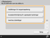 Åtkomst till funktioner för användare som har svårigheter att se eller utföra inmatningar på pekskärmen