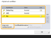 Välj nyckel och certifikat för TLS-krypterad kommunikation och tryck på <Ange som standardnyckel>  <Ja>.