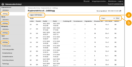 Du kan visa en logg för dokument som har kopierats, skrivits ut, skickats, tagits emot eller lagrats.