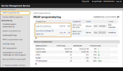 Klik på [MEAP Application Management], og klik på applikationen for at administrere licensen.