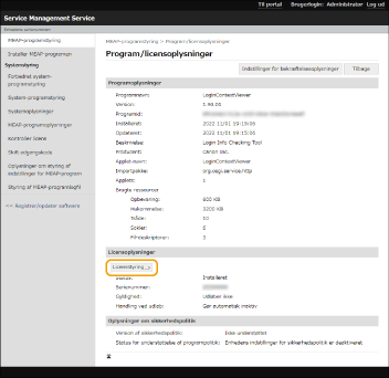Licensfilhandlinger kan være nødvendige på andre tidspunkter end ved installation af en MEAP-applikation. Selv når den licenserede tællerværdi eller brugsperiode er overskredet eller er udløbet, kan du f.eks. fortsætte med at bruge MEAP-applikationen ved at tilføje en licensfil. Hvis du vil slette en MEAP-applikation, skal du desuden slette licensfilen på forhånd.