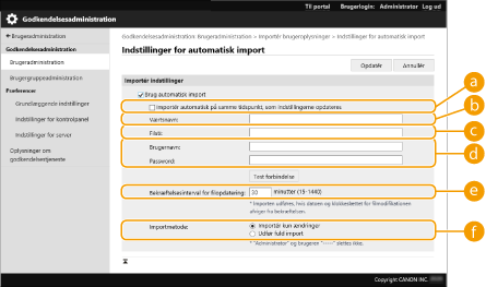 Vælg afkrydsningsfeltet for [Brug automatisk import], og angiv de nødvendige indstillinger.